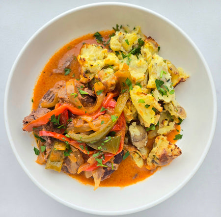 Hungarian Beef Goulash | Smashed Roasted Garlic Potato | Chives