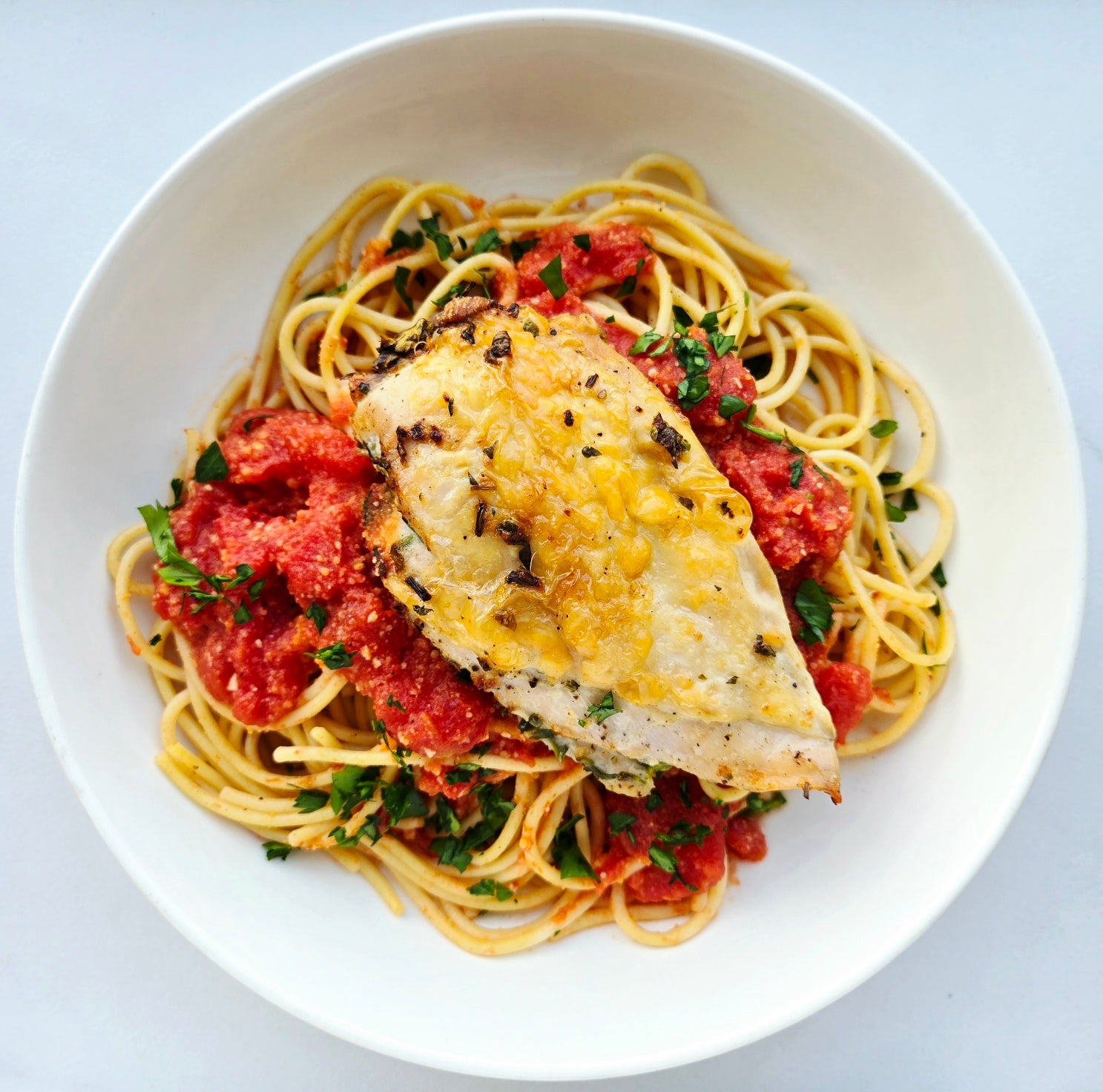 Fragrant garlic basil chicken served with a zesty tomato butter sauce and spaghetti. Perfect for date night or entertaining. Available February 24th through March 2nd. Sunday, in store only, while quantities last.